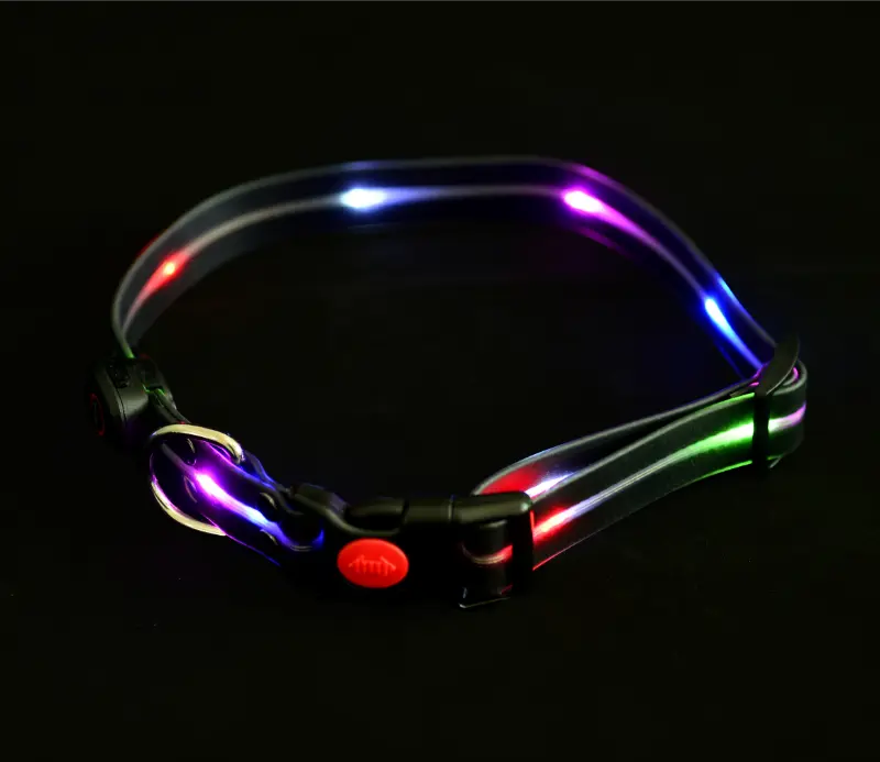 Obroża LED w rozmiarze S zapewnia widoczność w ciemności. Trzy tryby migania (szybkie, wolne, stałe) i kolory RGB. Ładowana przez USB-C, z czasem pracy od 4 do 10 godzin w zależności od trybu. Wykonana z nylonu, światłowodu i diod LED. Idealna dla małych psów na wieczorne spacery.
